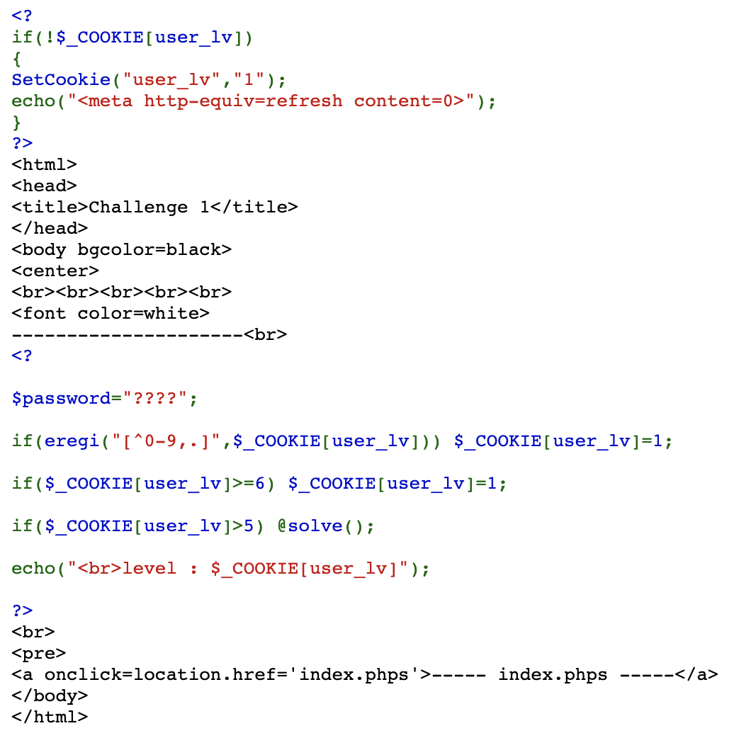 소스를 보니 밑에 저거 클릭하면 index.phps 로 이동한다는 것을 알 수 있다. ( 직접 들어가도 되지만 ㅎㅎ )