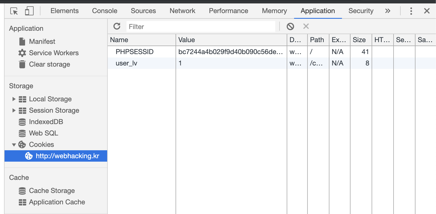 오호라 user_lv 라는 Cookie 값을 5 보다 크지만 6 보다는 작게 만들어주면 되겠네!!