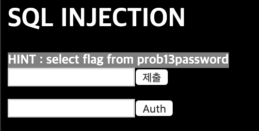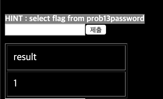 Hint 에 " select flag from prob13password " 라고 나와있다.