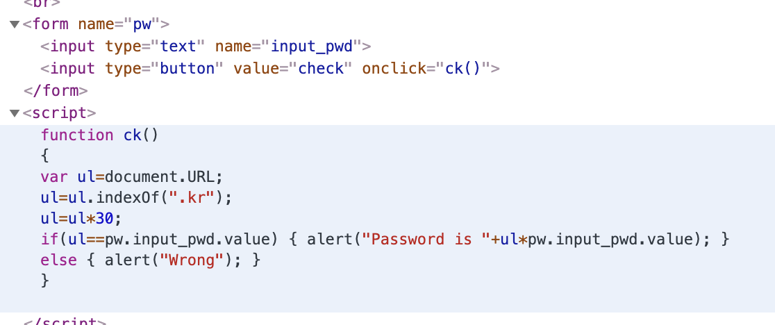 소스코드를 분석해보면 URL 에서 .kr 의 index 를 ul 에 저장하고 그 값과 30을 곱한뒤에 입력해주면 문제가 풀리는 것을 알 수 있다.