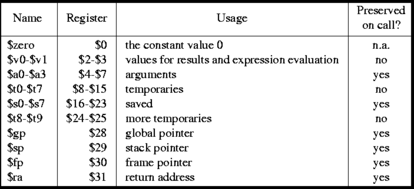 - 레지스터 이름 별로 정해진 용도가 있다.