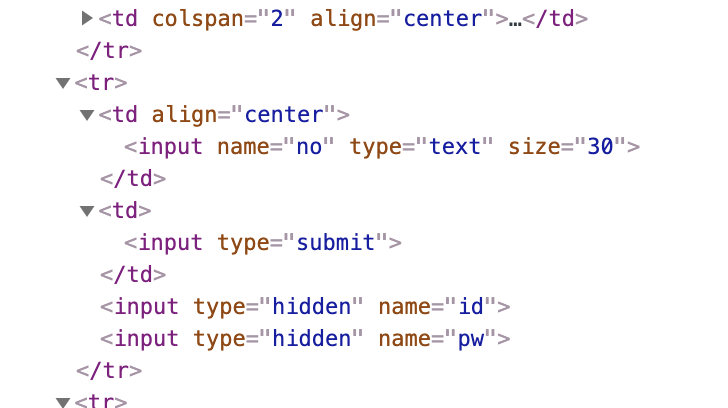 다음과 같이 column 의 형태를 input 태그의 name 들로 설정하여 힌트를 주었다.