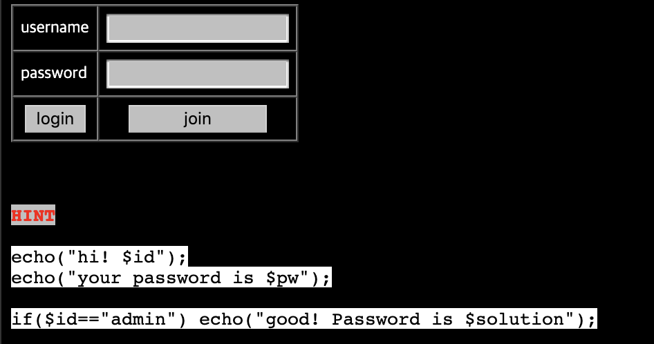 다음과 같은 화면이 나오고, 아래의 코드를 조금만 분석해보면 admin 의 password 를 맞춰야할 것 같다는 생각이 든다.