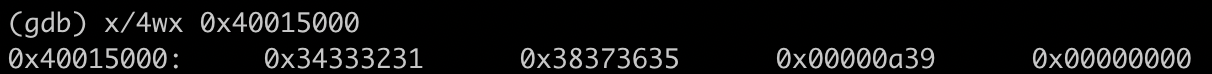 따라서 0x40015000 ~ 0x4001500a 에 내가 넣어준 값이 들어가 있다는 뜻이 된다.