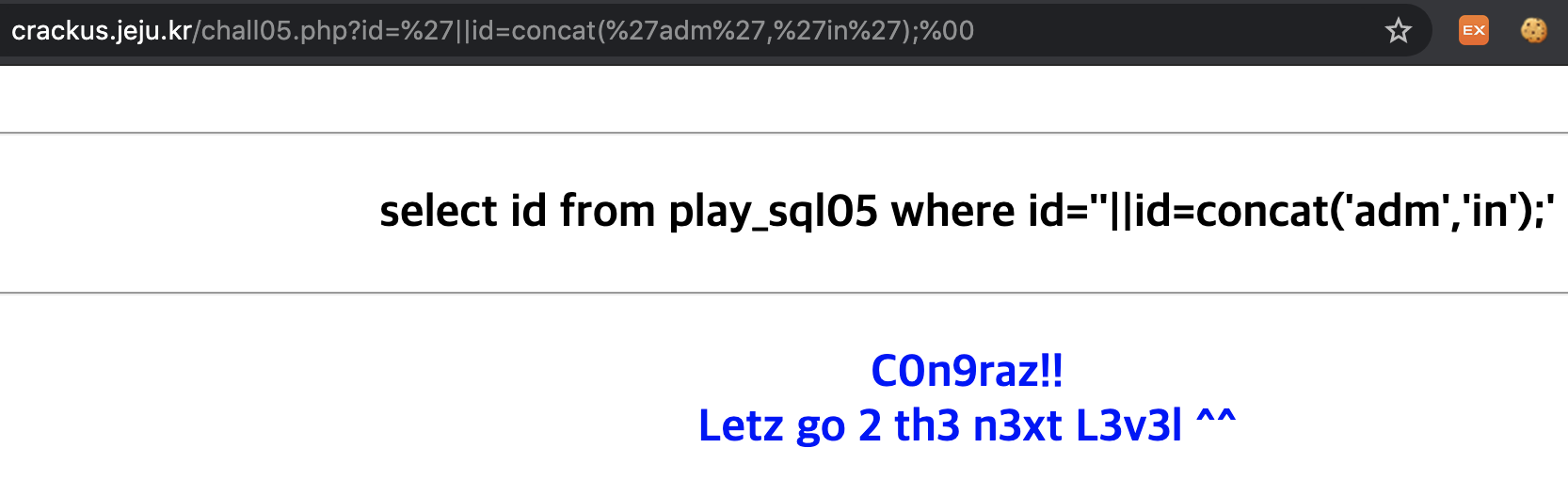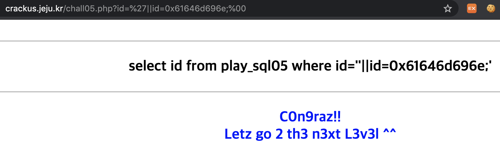 crackus 5 번 문제에서 다음과 같이 admin 의 사용이 막혀있는 것을 알 수 있다.